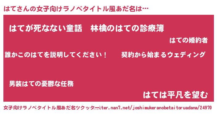 | 胡散臭い通販商品みたいなあだ名 | 『億万長者になれる水晶球…その名も「はて」』 |