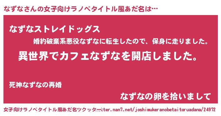 | 意味不明あだ名 | 『永久保存なずな』『自称なずな』 |