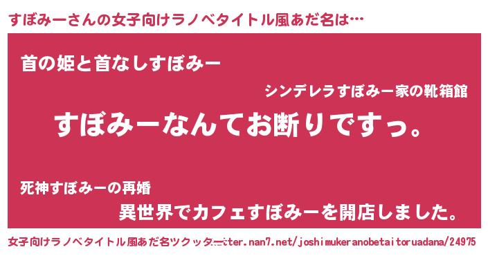 | 男性向けラノベタイトル風あだ名 | 『魔法科高校のすぼみー』 |