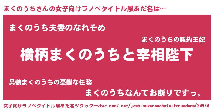 | 男性向けラノベタイトル風あだ名 | 『まくのうちに滅ぼされるだけの簡単なお仕事です』 |
