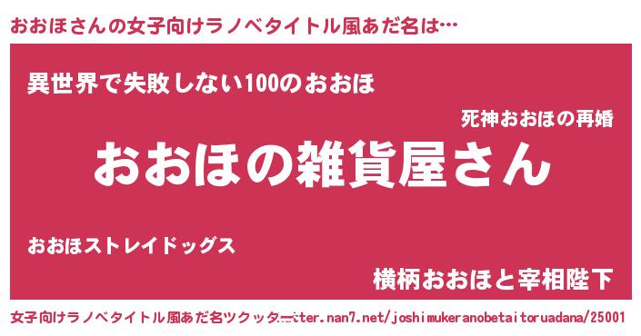 | ヒーロー風カッコイイあだ名 | 『ウルトラおおほマン』『ネオオオホ』 |