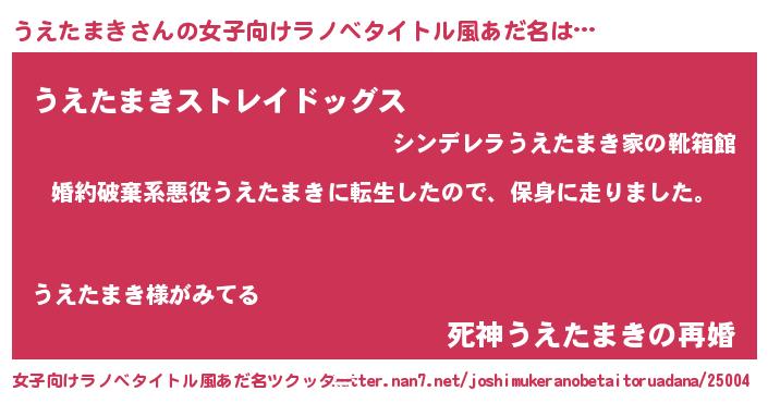 | 男性向けラノベタイトル風あだ名 | 『転生したらうえたまきだった件』 |