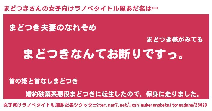 | 意味不明あだ名 | 『自称まどつき』『なめこ科まどつき属』 |
