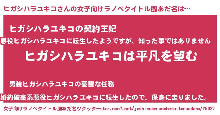 | 意味不明あだ名 | 『とにかく怪しいヒガシハラユキコ』 |