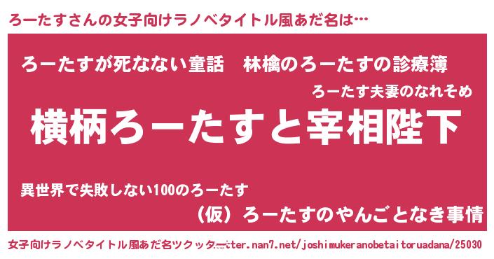 | 意味不明あだ名 | 『住所不定無職ろーたす(11歳)』 |