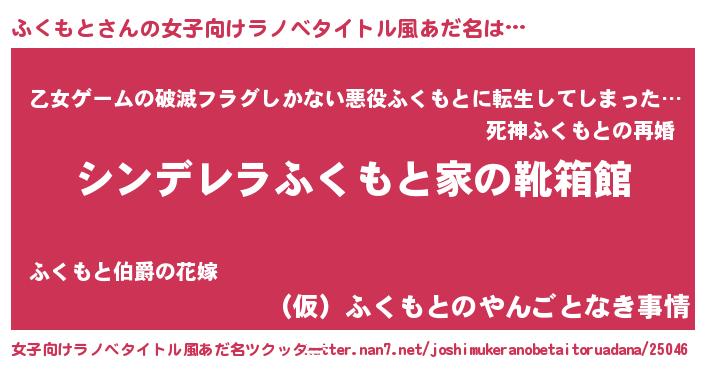 | 男性向けラノベタイトル風あだ名 | 『冴えないふくもとの育てかた』 |