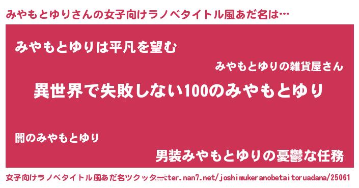 | ヒーロー風カッコイイあだ名 | 『ネオミヤモトユリ』『黄金騎士ミヤ』 |