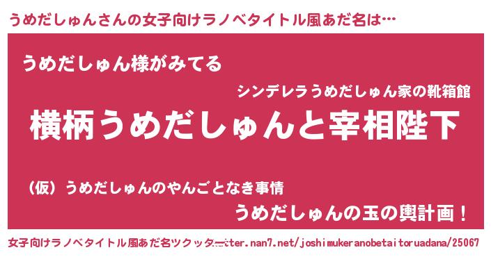 | 男性向けラノベタイトル風あだ名 | 『うめだしゅんに滅ぼされるだけの簡単なお仕事です』 |