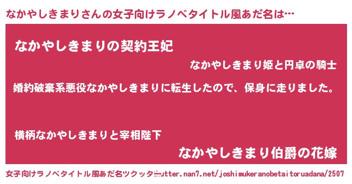 | 男性向けラノベタイトル風あだ名 | 『転生したらなかやしきまりだった件』 |