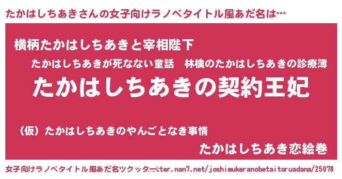 | 男性向けラノベタイトル風あだ名 | 『たかはしちあきという概念が存在しない退屈な世界 』 |