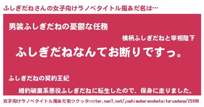 | 意味不明あだ名 | 『自称ふしぎだね』『永久保存ふしぎだね』 |