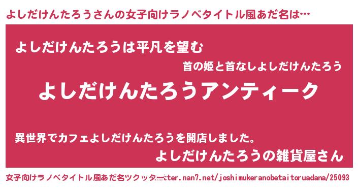 | 意味不明あだ名 | 『自称よしだけんたろう』 |
