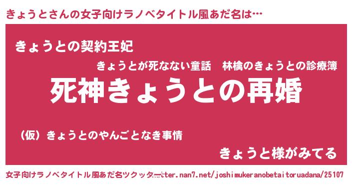 | 男性向けラノベタイトル風あだ名 | 『ノーゲーム・ノーキョウト』 |
