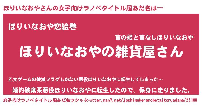 | 男性向けラノベタイトル風あだ名 | 『やはりほりいなおやの青春ラブコメはまちがっている 』 |