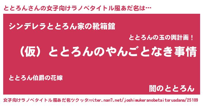 | 男性向けラノベタイトル風あだ名 | 『ととろんの憂鬱』『緋弾のトトロン』 |