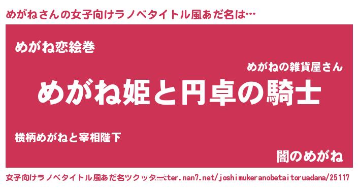 | 男性向けラノベタイトル風あだ名 | 『めがねの憂鬱』 |