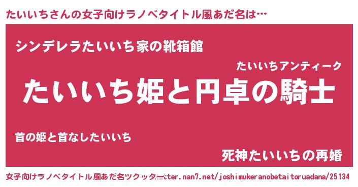 | 男性向けラノベタイトル風あだ名 | 『たいいちの憂鬱』『緋弾のタイイチ』 |
