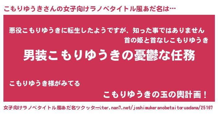 | 男性向けラノベタイトル風あだ名 | 『うちのこもりゆうきが世界を掌握している!』 |