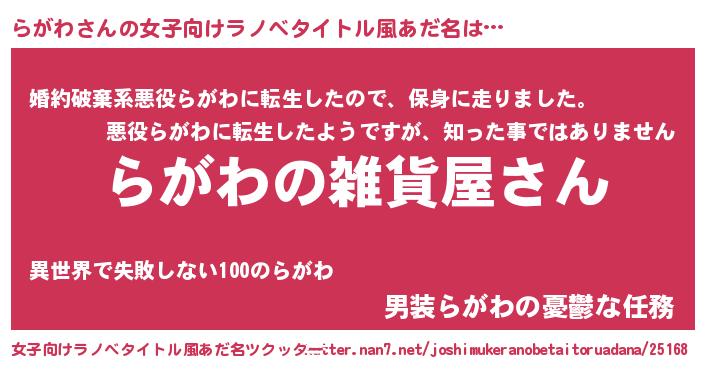 | 肩書あだ名 | 『らがわ国家主席』『らがわ少将』 |