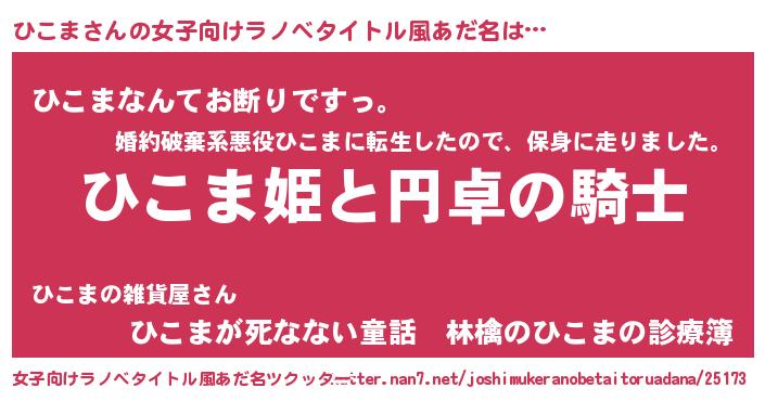 | 胡散臭い通販商品みたいなあだ名 | 『モテモテ間違いなし霊験あらたかなお札…その名も「ひこま」』 |