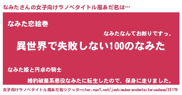 | 男性向けラノベタイトル風あだ名 | 『なみたという概念が存在しない退屈な世界 』 |