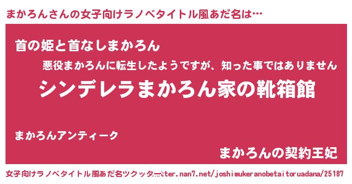 | 意味不明あだ名 | 『永久保存まかろん』『自称まかろん』 |