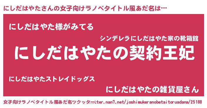 | 胡散臭い通販商品みたいなあだ名 | 『来世でも幸せになれる健康食品…その名も「にしだはやた」』 |