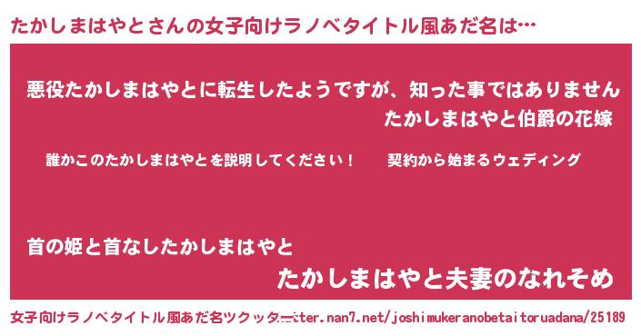 | 肩書あだ名 | 『たかしまはやと御曹司』 |