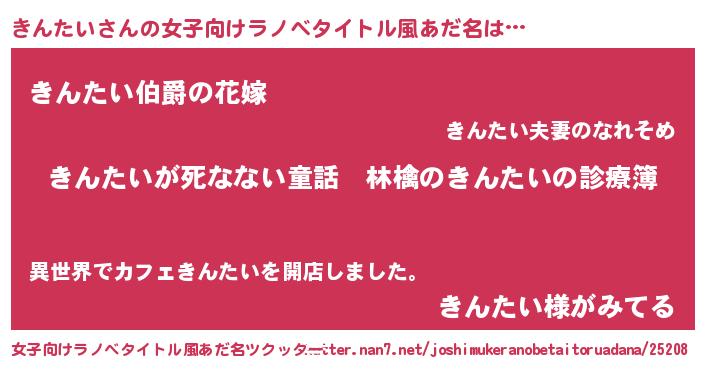 | 男性向けラノベタイトル風あだ名 | 『魔弾の王ときんたい』 |