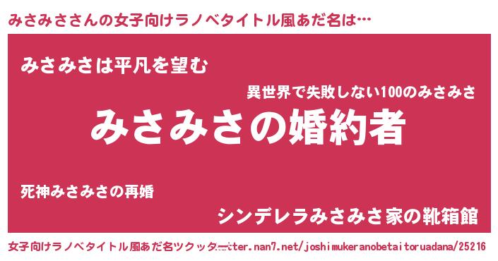 | 胡散臭い通販商品みたいなあだ名 | 『運命の人と巡り会える高級そうな壺…その名も「みさみさ」』 |