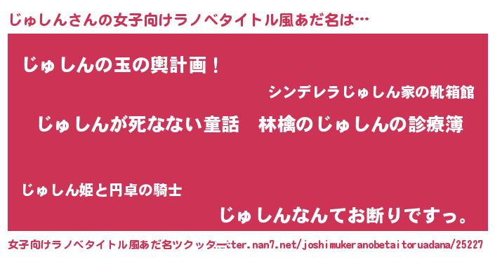 | 胡散臭い通販商品みたいなあだ名 | 『ハリウッド女優が絶賛した100年もののヴィンテージワイン…その名も「じゅしん」』 |