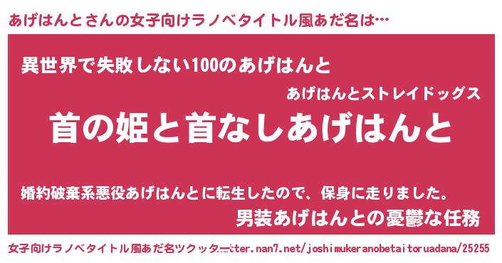 | 男性向けラノベタイトル風あだ名 | 『はたらくあげはんとさま!』 |