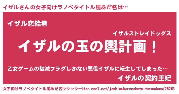 | ヒーロー風カッコイイあだ名 | 『慈愛の使者イザル』『ネオイザル』 |
