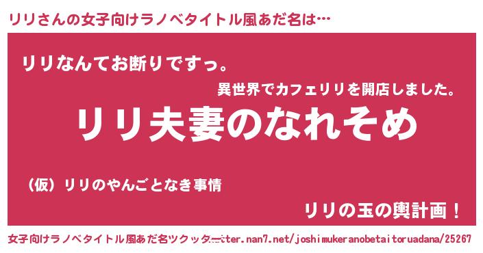 | 男性向けラノベタイトル風あだ名 | 『おまえをオタクにしてやるから、俺をリリにしてくれ! 』 |