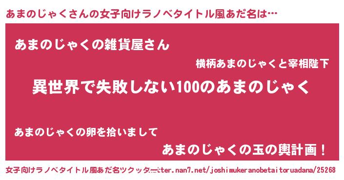 | 男性向けラノベタイトル風あだ名 | 『あまのじゃくという概念が存在しない退屈な世界 』 |