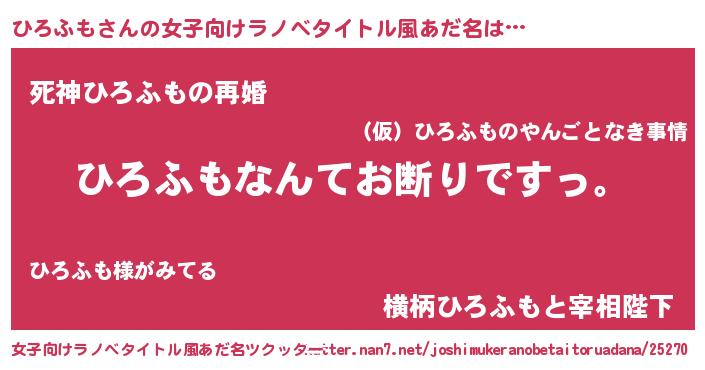 | 肩書あだ名 | 『ひろふも総統』『ひろふも助教授』 |