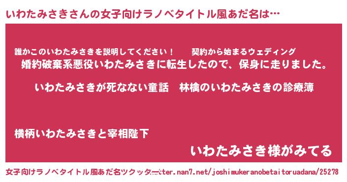 | 意味不明あだ名 | 『住所不定無職いわたみさき(74歳)』 |