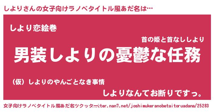 | ヒーロー風カッコイイあだ名 | 『天空の使者しより』『最強戦士シヨリ』 |