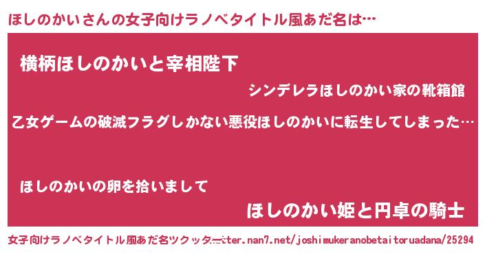 | 意味不明あだ名 | 『住所不定無職ほしのかい(13歳)』 |