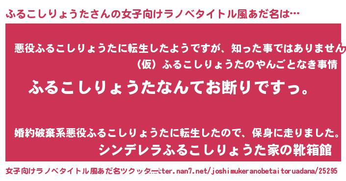 | 意味不明あだ名 | 『自称ふるこしりょうた』 |