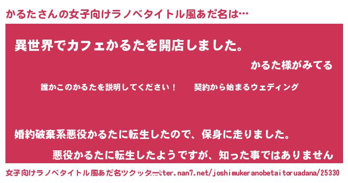 | 男性向けラノベタイトル風あだ名 | 『カルタアートオンライン』 |