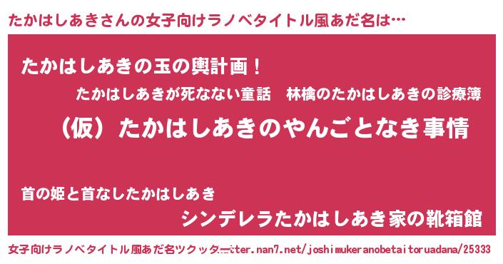 | 男性向けラノベタイトル風あだ名 | 『たかはしあきの憂鬱』 |