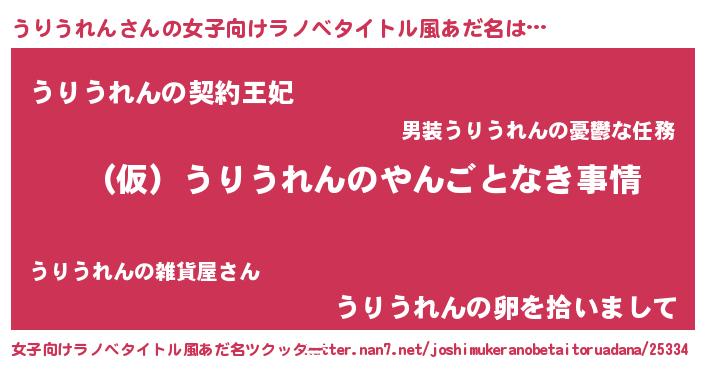 | 胡散臭い通販商品みたいなあだ名 | 『必ず成功する霊験あらたかなお札…その名も「うりうれん」』 |