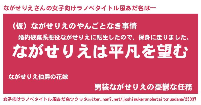 | 男性向けラノベタイトル風あだ名 | 『ダンジョンにながせりえを求めるのは間違っているだろうか』 |