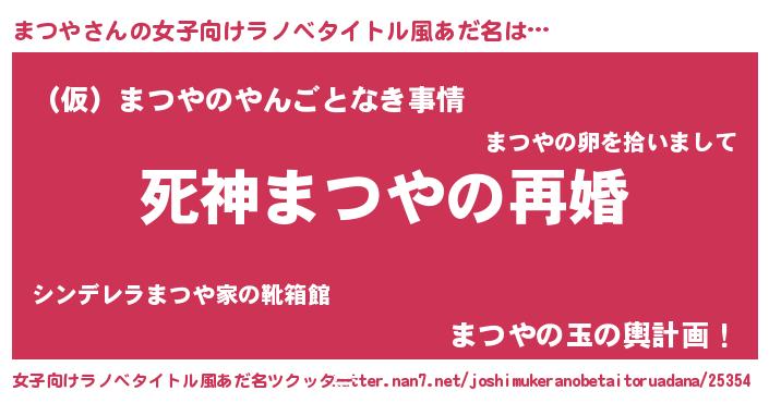 | 男性向けラノベタイトル風あだ名 | 『ノーゲーム・ノーマツヤ』 |