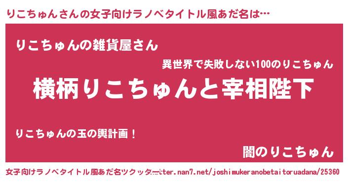 | 男性向けラノベタイトル風あだ名 | 『りこちゅんに滅ぼされるだけの簡単なお仕事です』 |