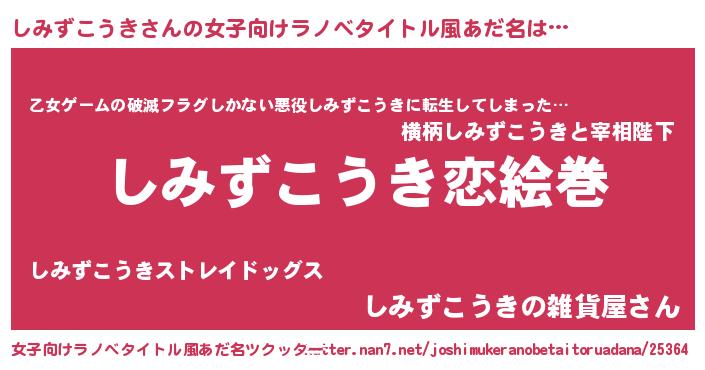 | 男性向けラノベタイトル風あだ名 | 『おまえをオタクにしてやるから、俺をしみずこうきにしてくれ! 』 |