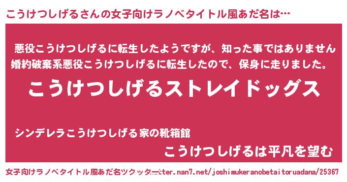 | 意味不明あだ名 | 『自称こうけつしげる』 |
