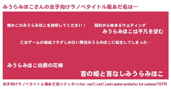 | 男性向けラノベタイトル風あだ名 | 『この素晴らしい世界にみうらみほこを!』 |