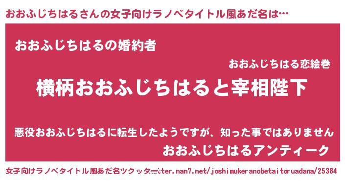 男性向けラノベタイトル風あだ名 | 『おおふじちはるに滅ぼされるだけの簡単なお仕事です』 |